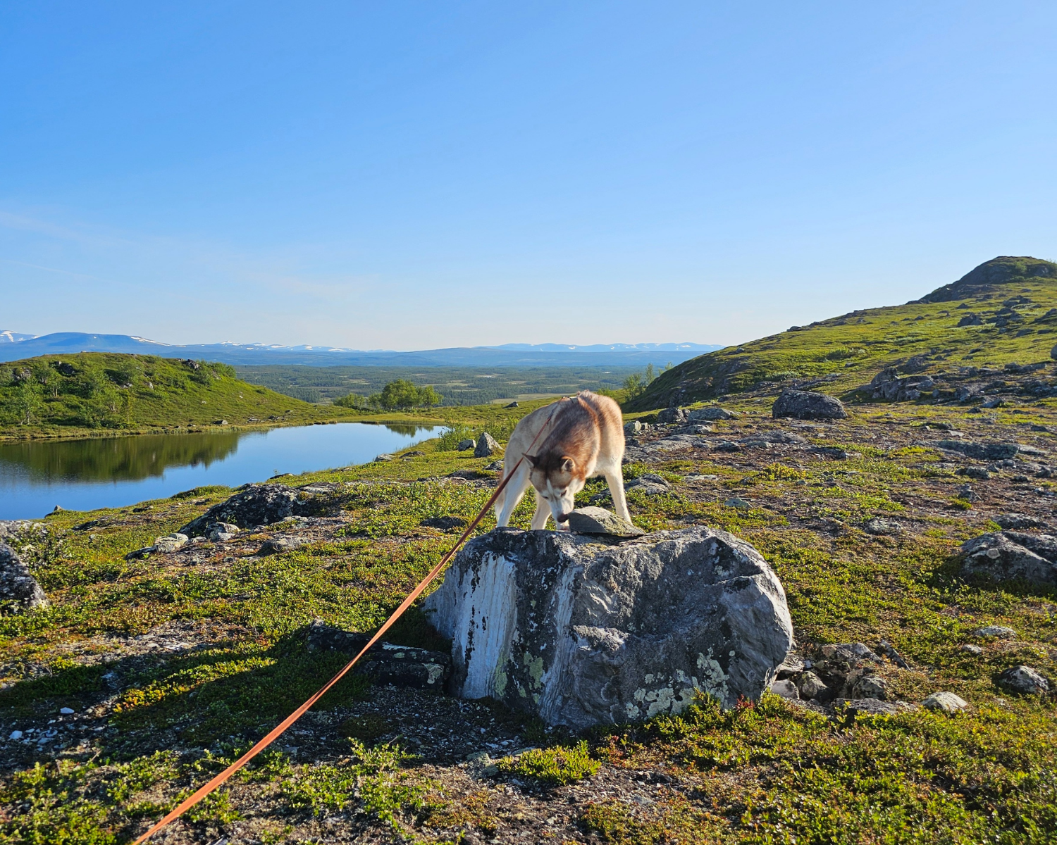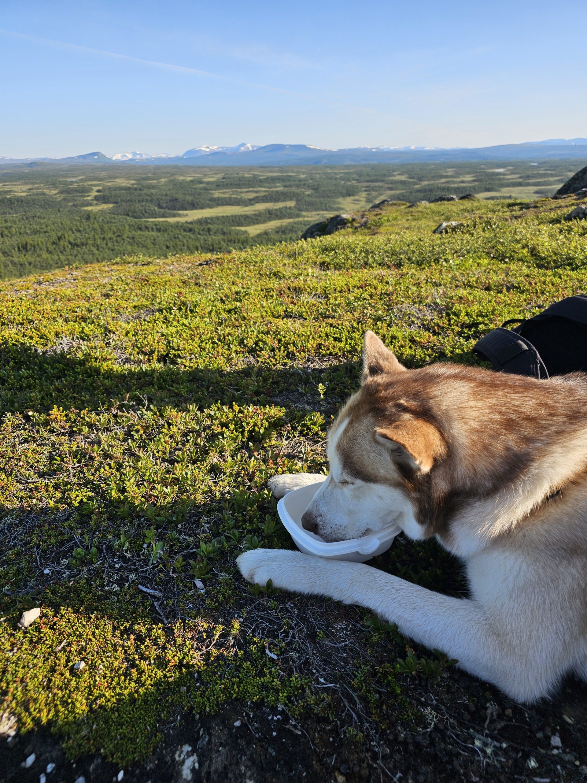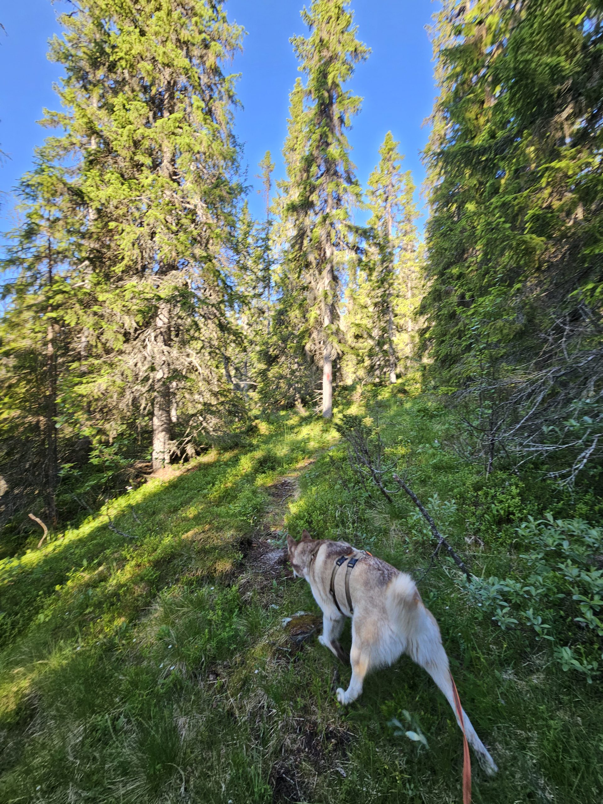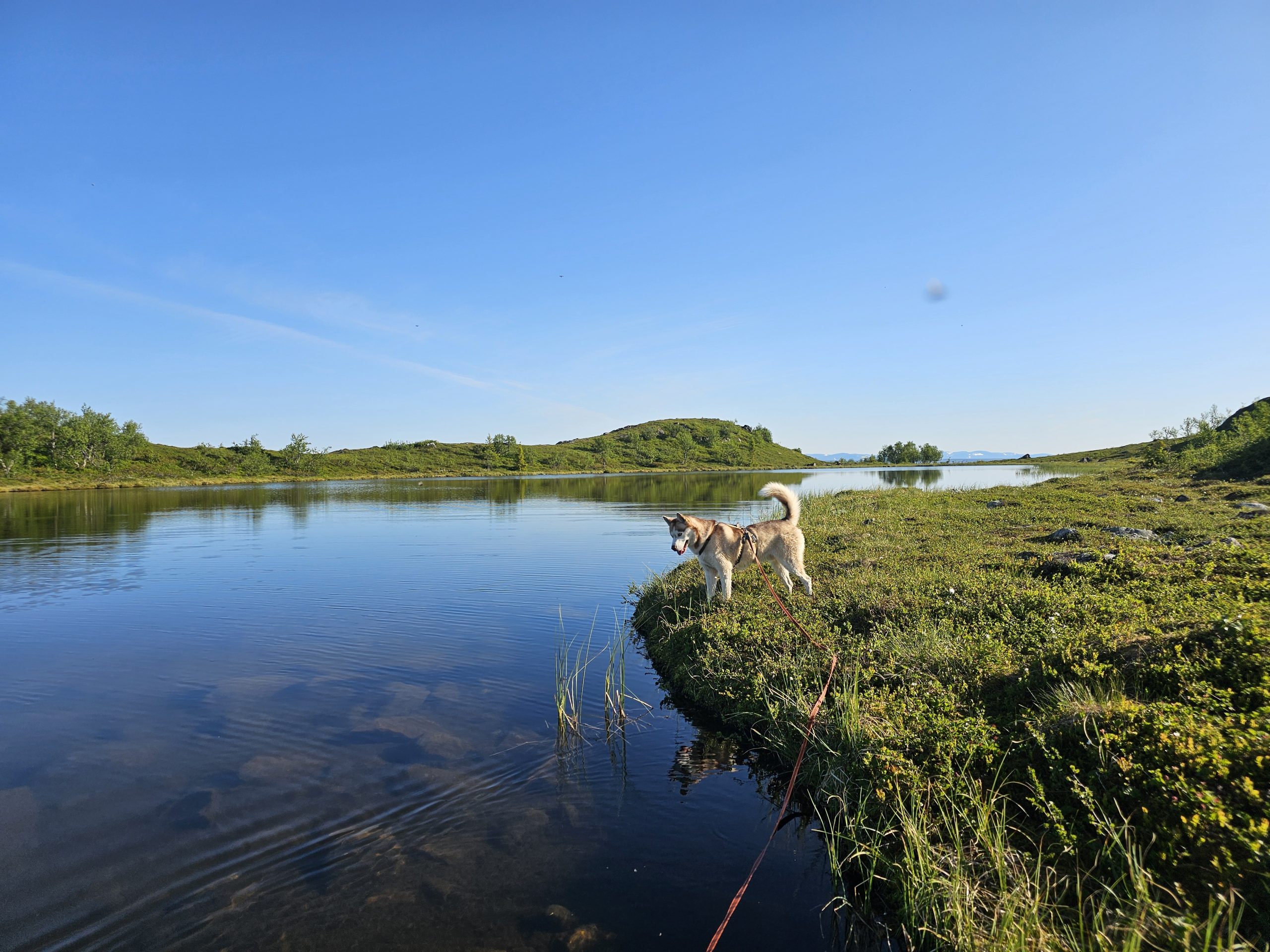 Dessutom är antalet sjöar och tjärnar runt omkring enormt. En av dem ligger precis intill Ormruet, så där passade vi på att låta hundarna gå ner och dricka och svalka sig.