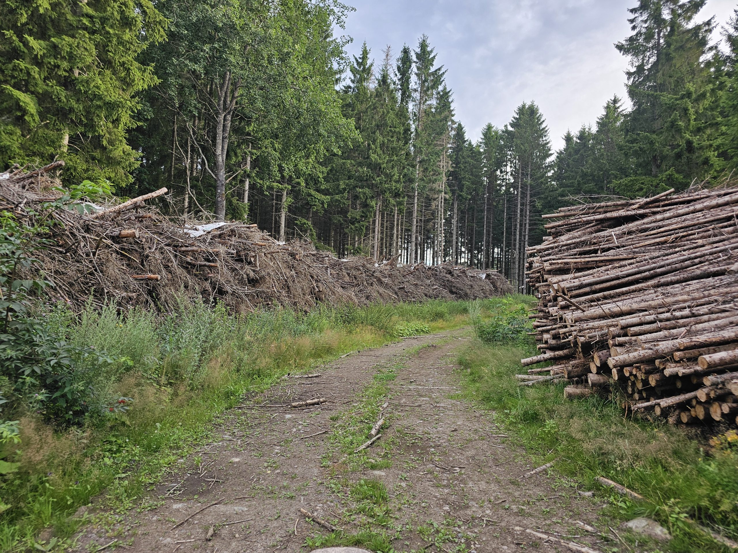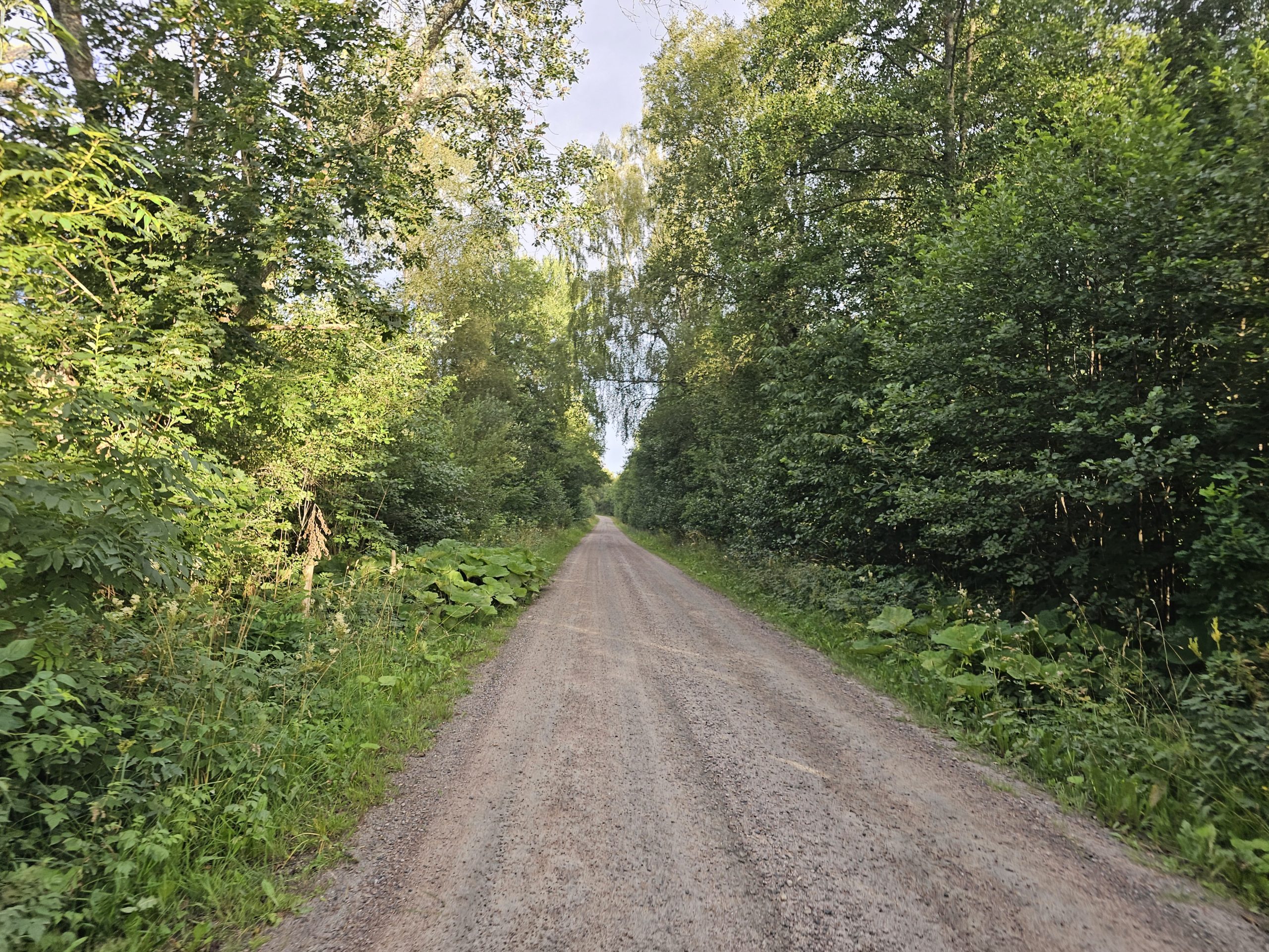Även efter att man har passerat Ramlaklev och två hyggen går leden på väg ett bra tag – för mig tog det ungefär en halvtimme på asfalt och grusvägar innan jag kom in i mer skogslik terräng igen. Här var det inte mycket som gjrode mig att bli glad, förutom vid utsiktsplatsen och några blommor som jag stannade till för att fota.