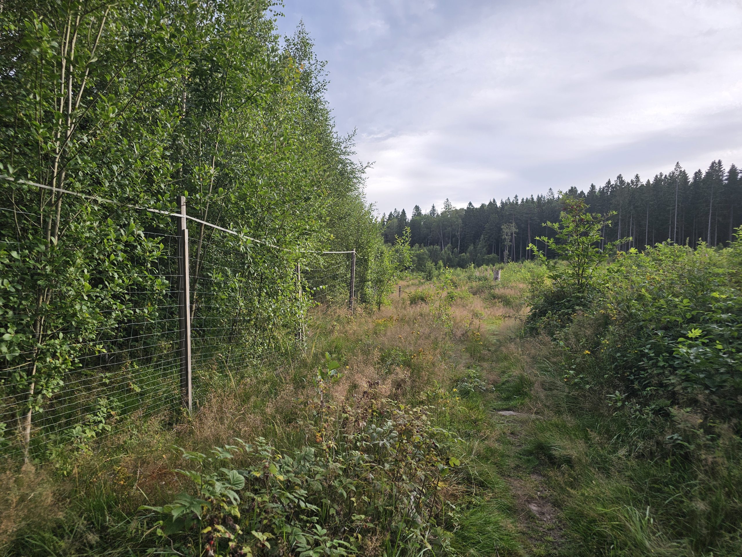 Sista biten innan leden når fram till Billingeleden, vid Torp naturreservat, går stigen bredvid viltstängsel utanför en plantodling. Jag måste erkänna att jag hade hoppats på en mer varierad natur på den här första delen av leden, där jag inte hade gått innan.