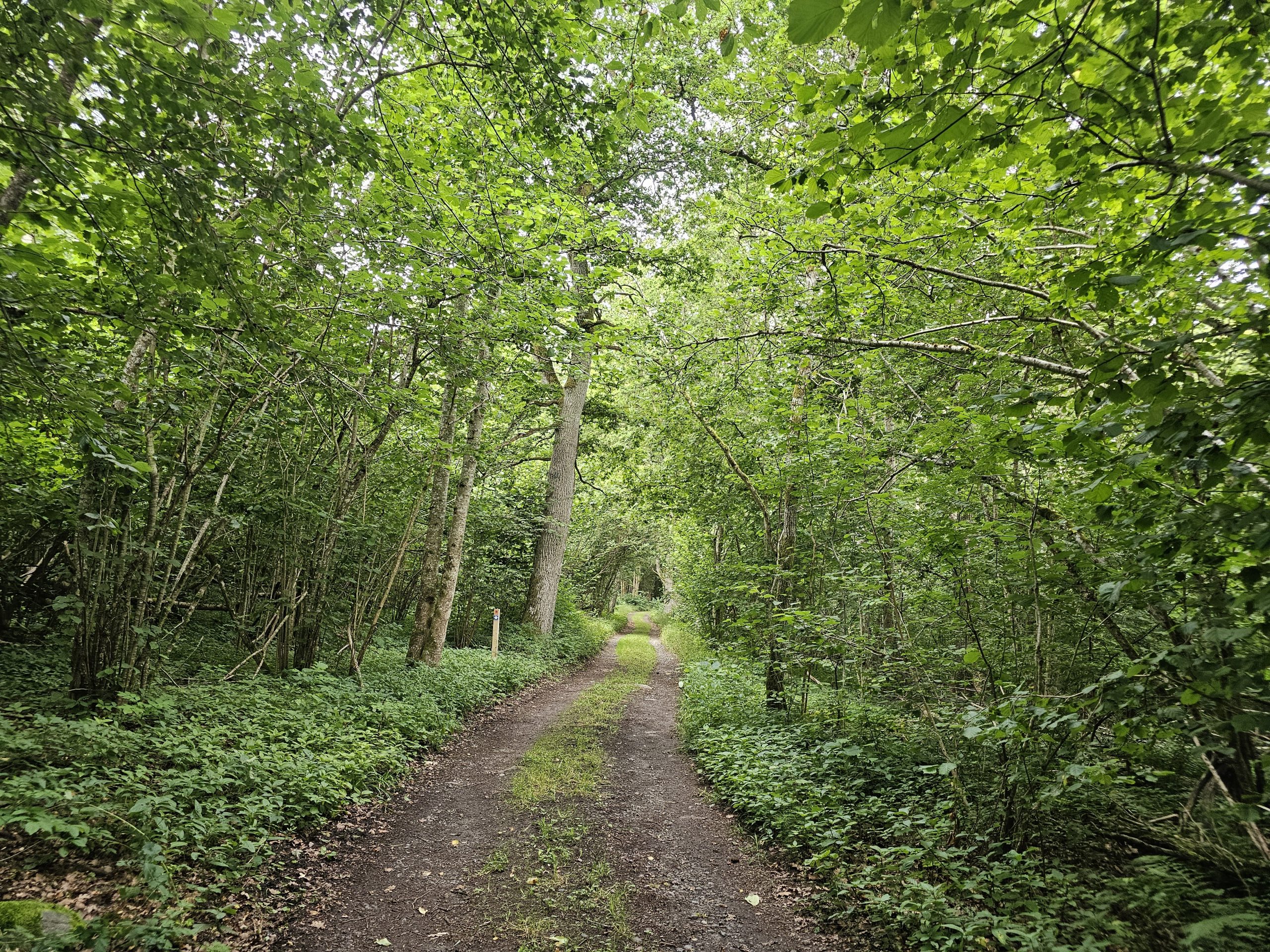 Den är mysig med grässträng i mitten och grönska runtom – både på marken och i den täta lövskogen. Härifrån följer Ramlaklevrundan Billingeleden hela vägen tillbaka till Varnhem, vilket för mig innebar att resten av turen gick på ”kända” stigar.