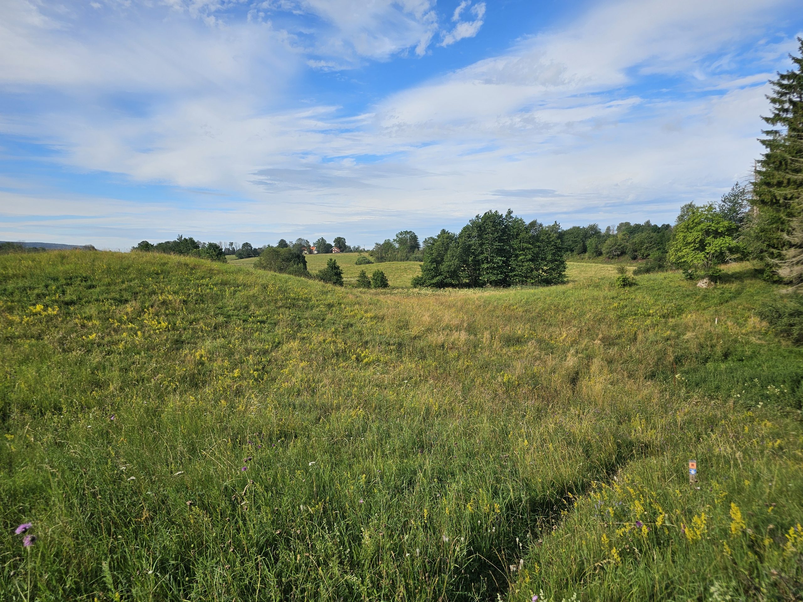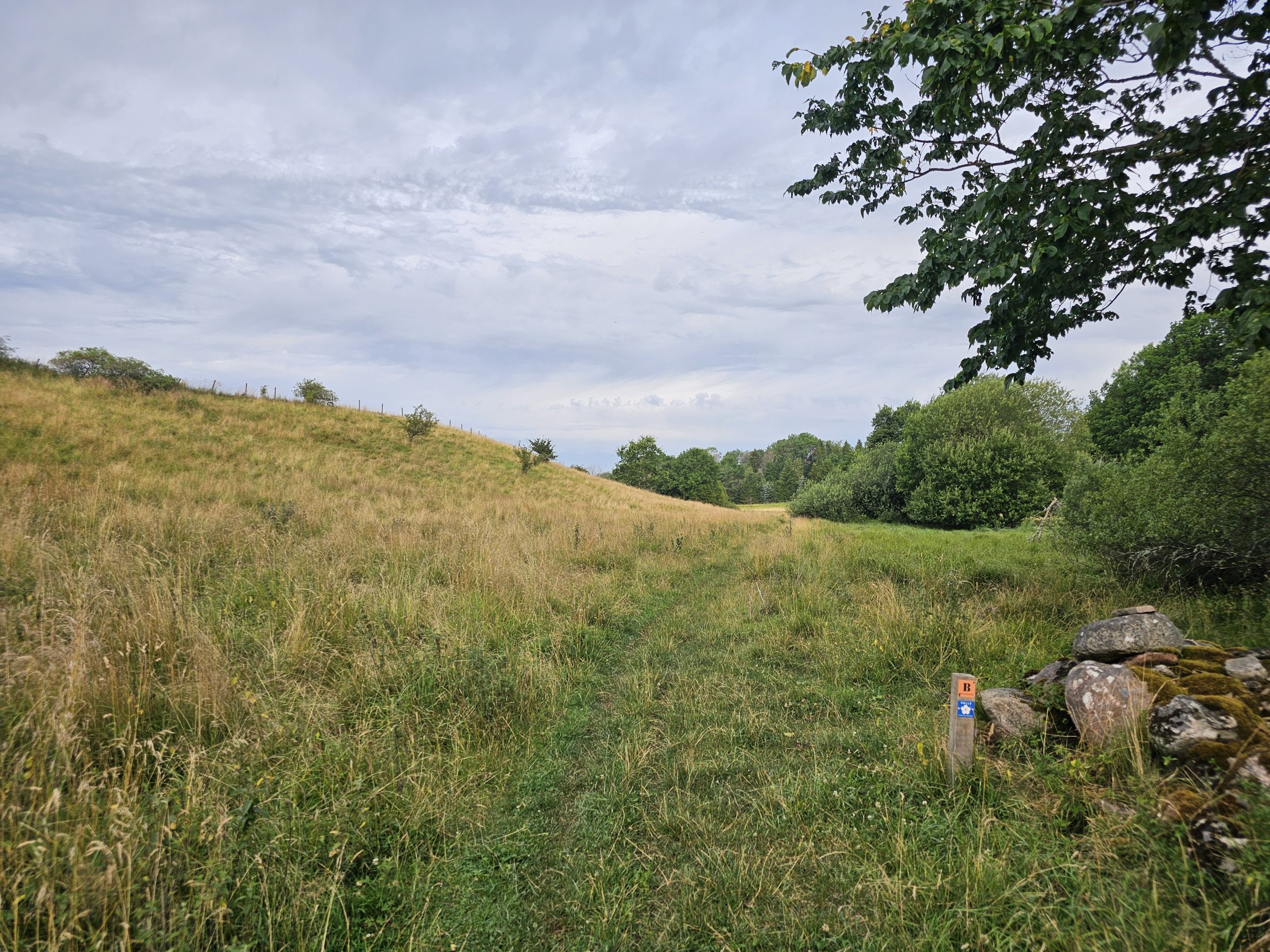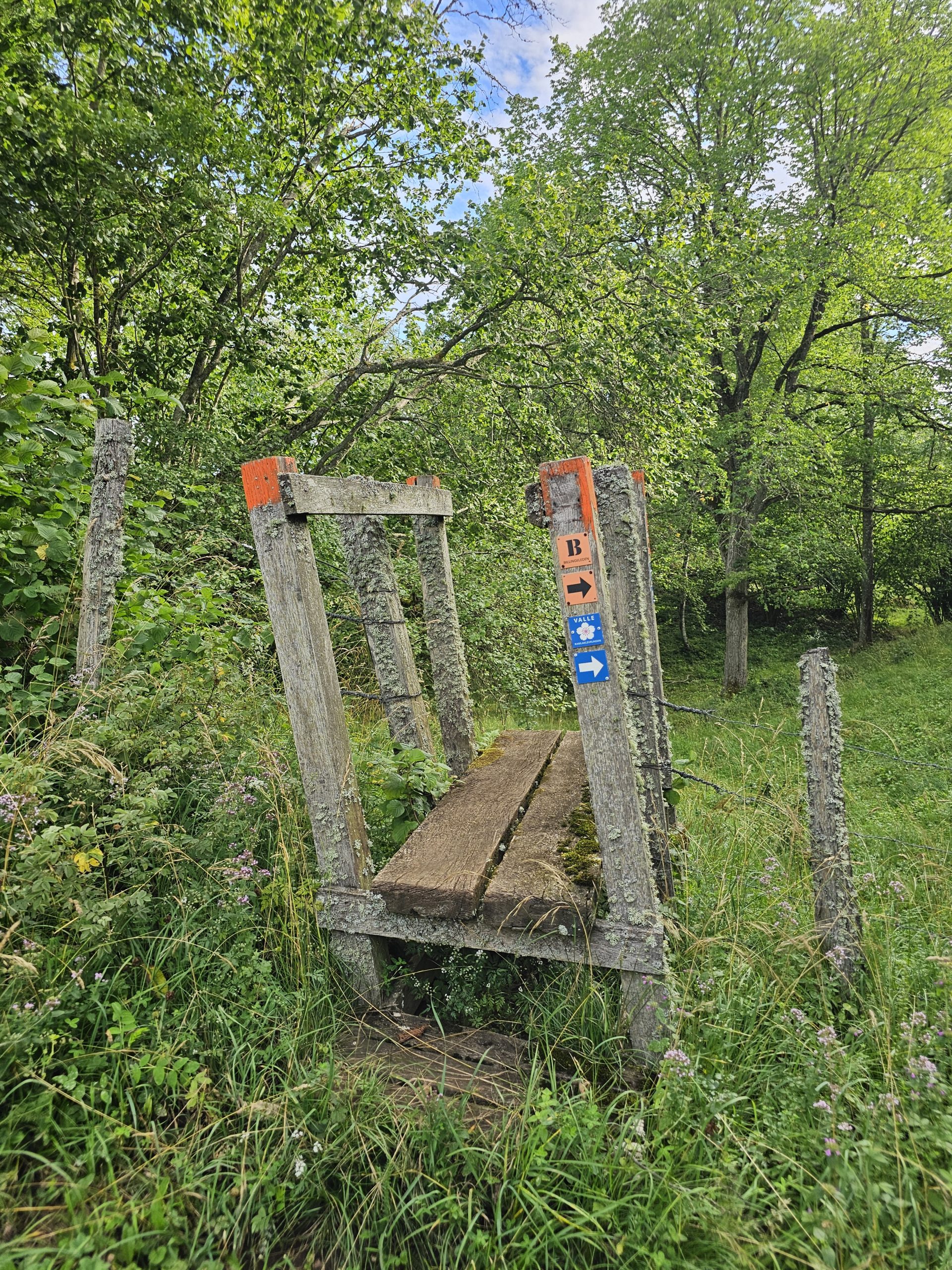 När jag lämnat sjöarna bakom mig väntade njutningsfull vandring i det böljande kamelandskapet i Valle. Enar, lummiga lövträd, mjuka kullar och massor av blommor, fjärilar och humlor följde mig kilometer efter kilometer, ända tills leden gick genom koporten under riksväg 49.