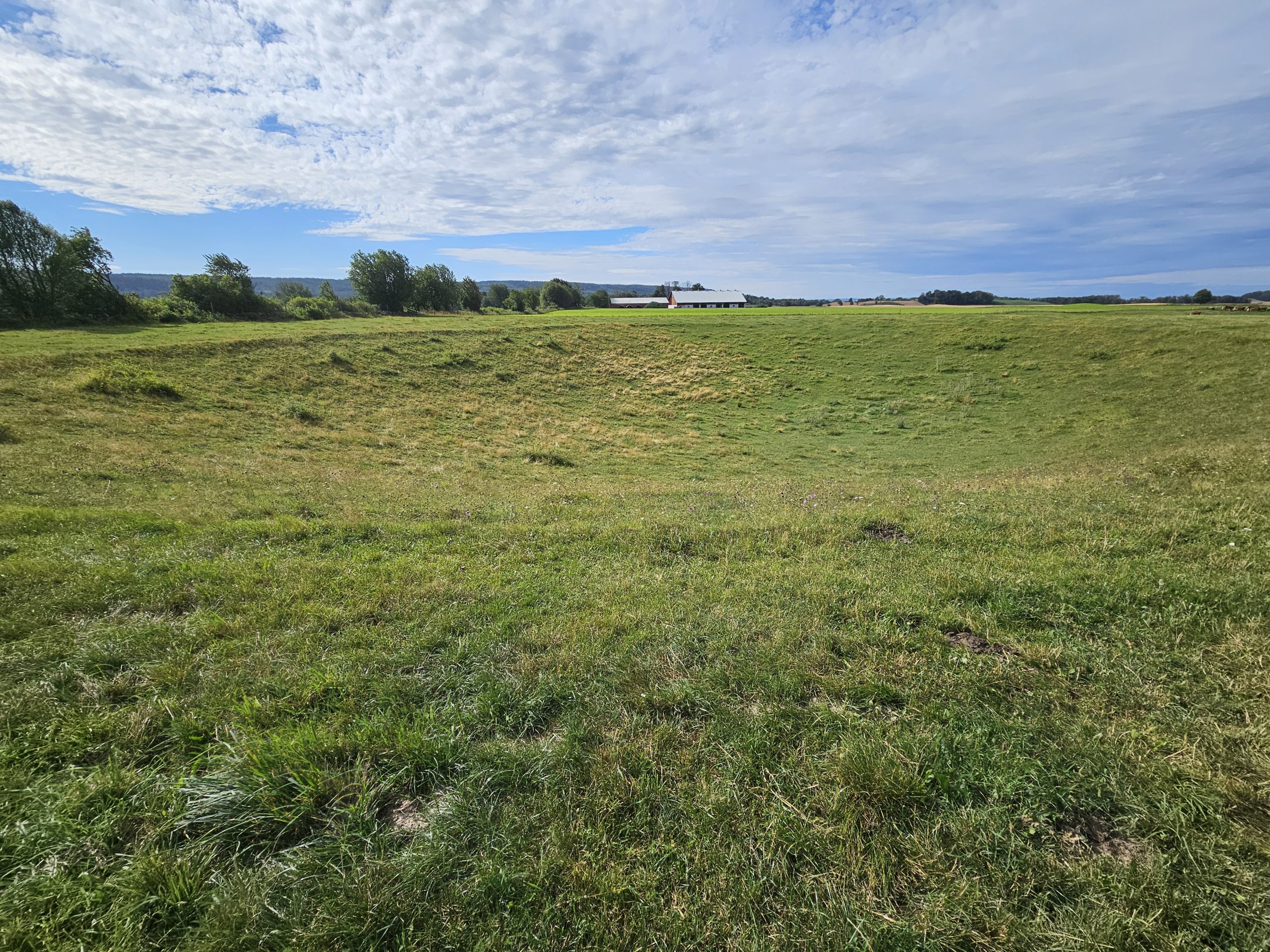 Efter att ha rundat en gård och gått på en liten ås med ädellövskog passerar man en stor hage. Här gick kor, och här finns en stor dödisgrop – en fördjupning i landskapet som bildats när ett isblock från inlandsisen smälte bort.