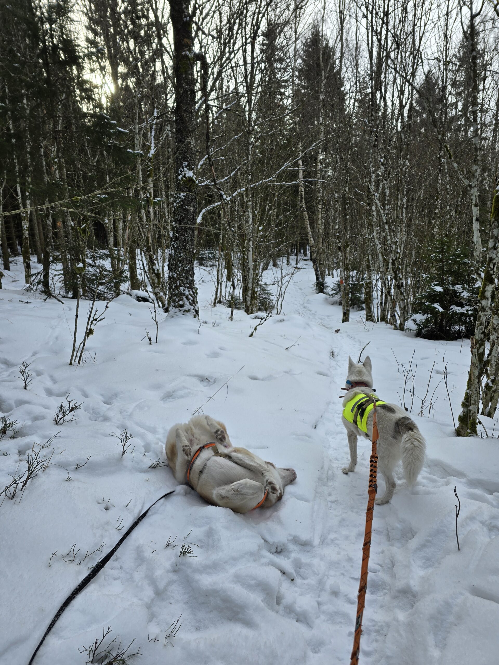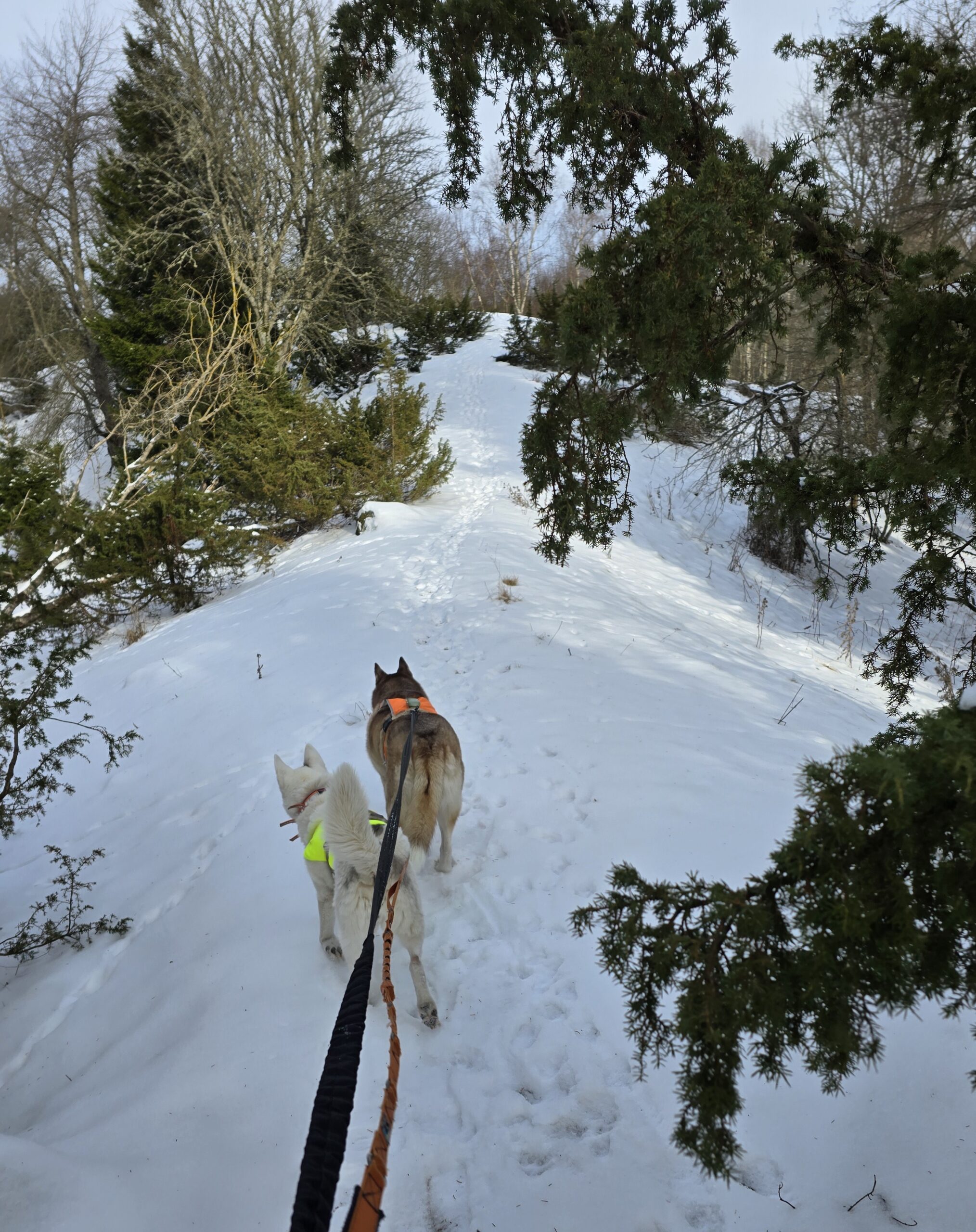 Men bortsett från det var det bara glädje. Mycket plumsande i snö, ett och annat skratt när jag åkte kana på rumpan nerför en backe och hundarna fick springa. Och framför allt känslan av att ha gett mig själv tid.