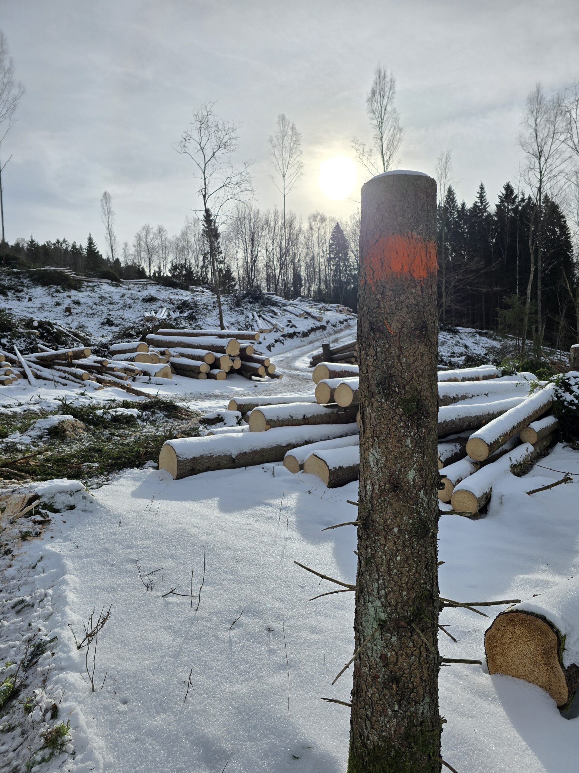 När v i närmade oss Torps naturreservat hade det blivit ett hygge sedan jag gick här senast. Det gick ändå bra att ta sig fram genom att följa traktorspåren, och alla ledmarkeringar satt kvar så jag behövde aldrig känna mig osäker på riktningen.