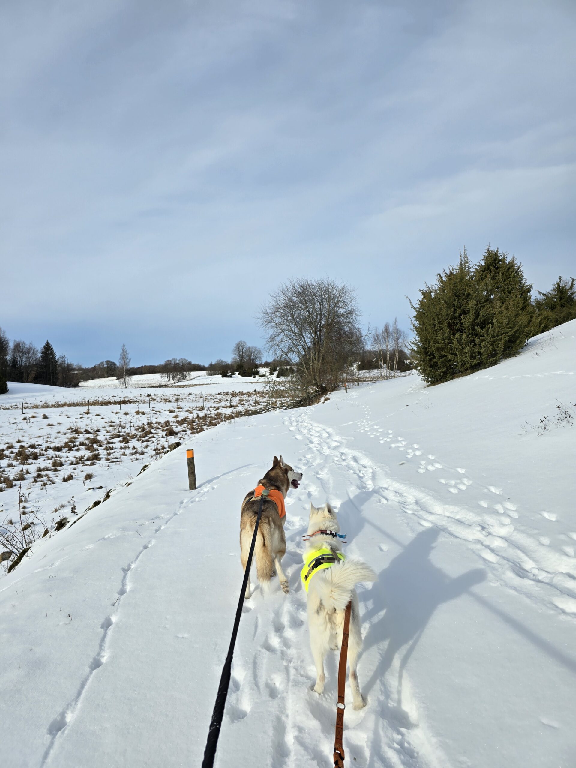 På min födelsedag gav jag mig själv en semesterdag och tio kilometer tillsammans med Teddy och Svea. Långa Öglunda-öglan låg stilla under snön, och landskapet jag mött i vårgrönska förra året hade fått en helt ny skepnad. Det blev ännu en påminnelse om hur vacker naturen är även utanför ”säsong”.