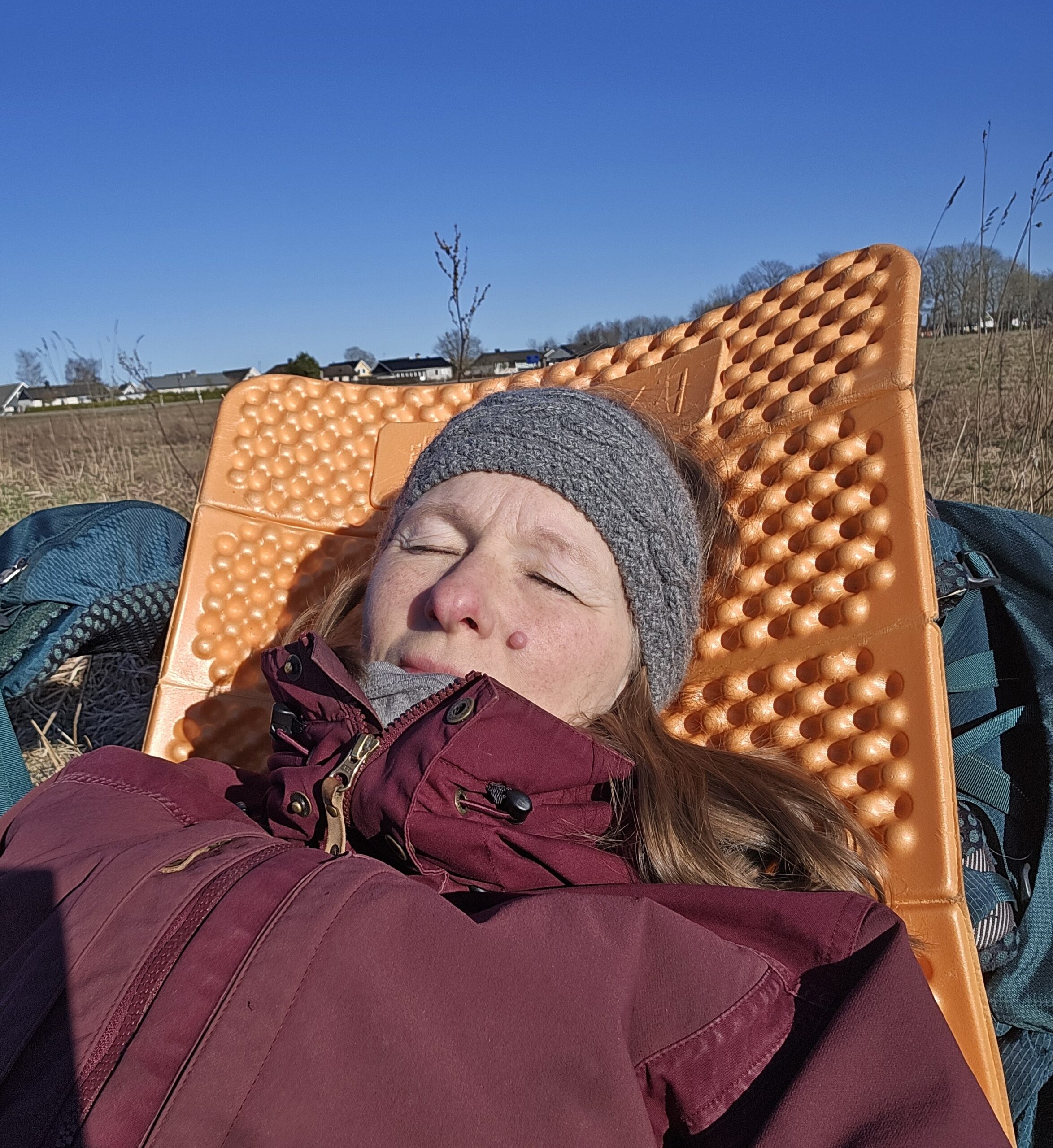 Det var soligt, men vindarna var iskalla. Där låg jag och kände solen värma kinderna medan fåglarna kvittrade ovanför mig. Samtidigt passerade bilar en liten bit ifrån mig, men på något sätt lyckades jag stänga ute ljudet och bara vara i stunden. För mig blev det en fin, och välbehövligt lugn, start på dagen.