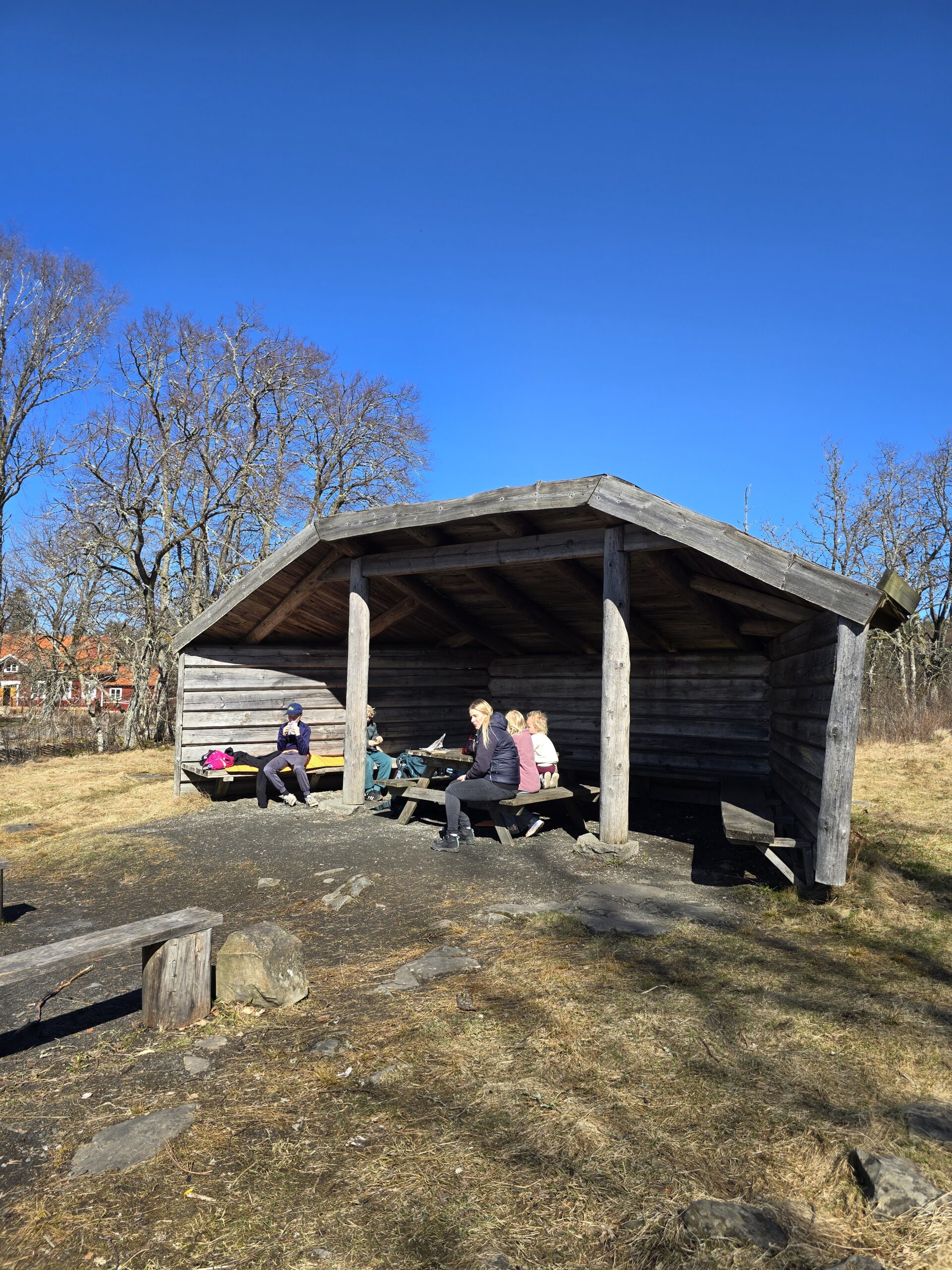 När vi gick ut från muséet var alla både törstiga och lite hungriga, så istället för att åka vidare till Gaddesanna som vi först tänkt följde vi skyltarna mot ett vindskydd i närheten. Där plockade jag fram pannkakor och sylt som alla högg in på. Det var färdiglagade pannkakor, så inte så outdoor-fancy, men jag lovar, de var lika goda ändå.